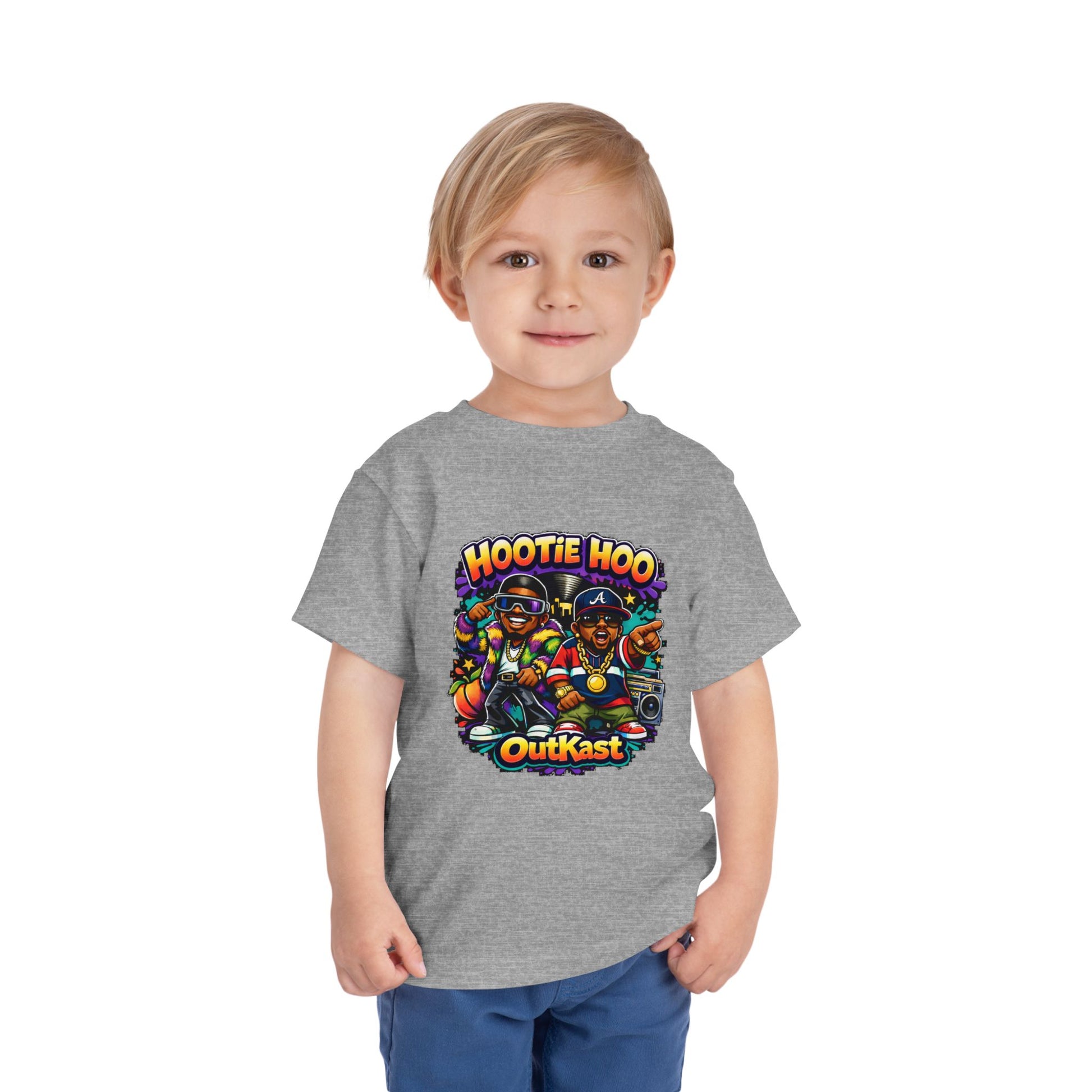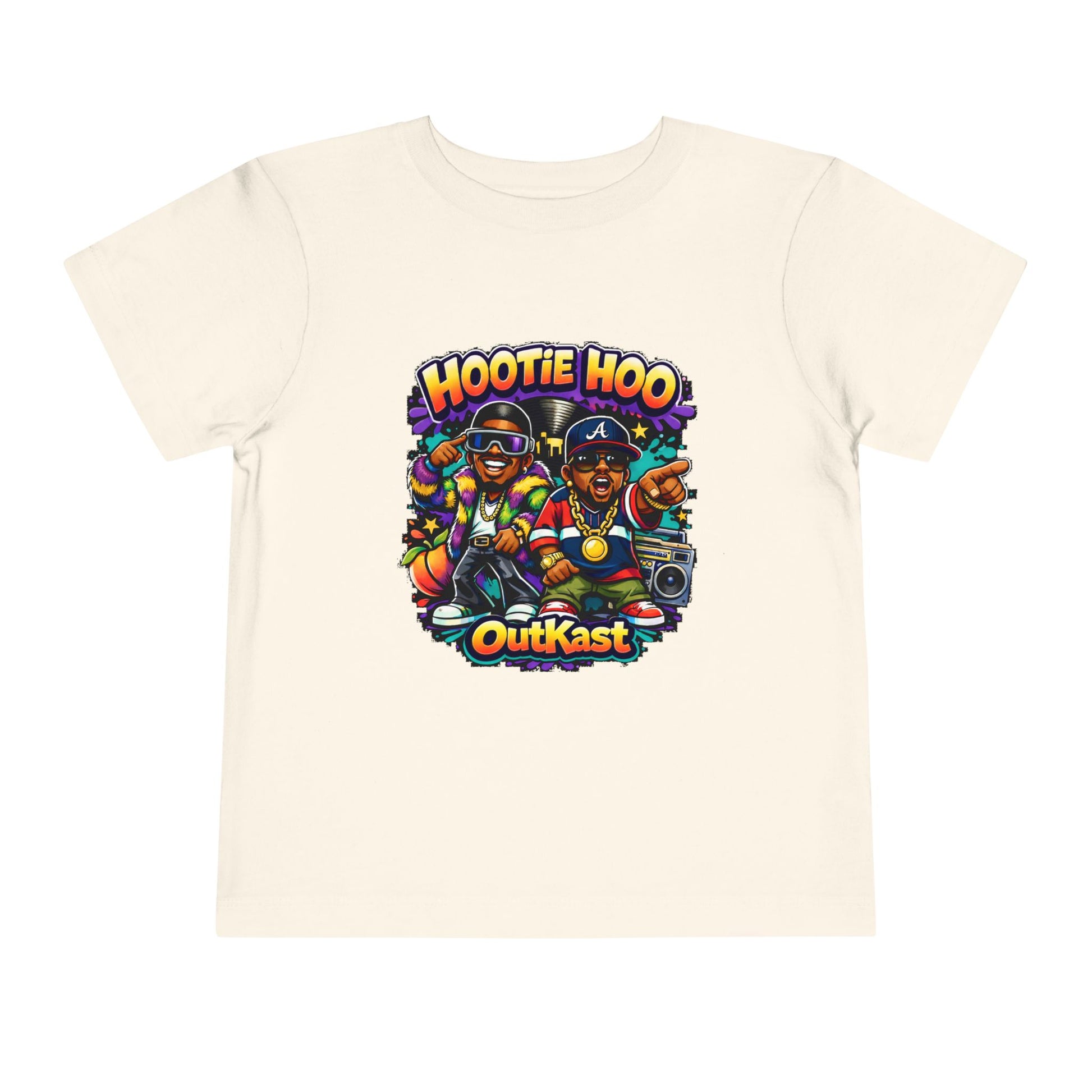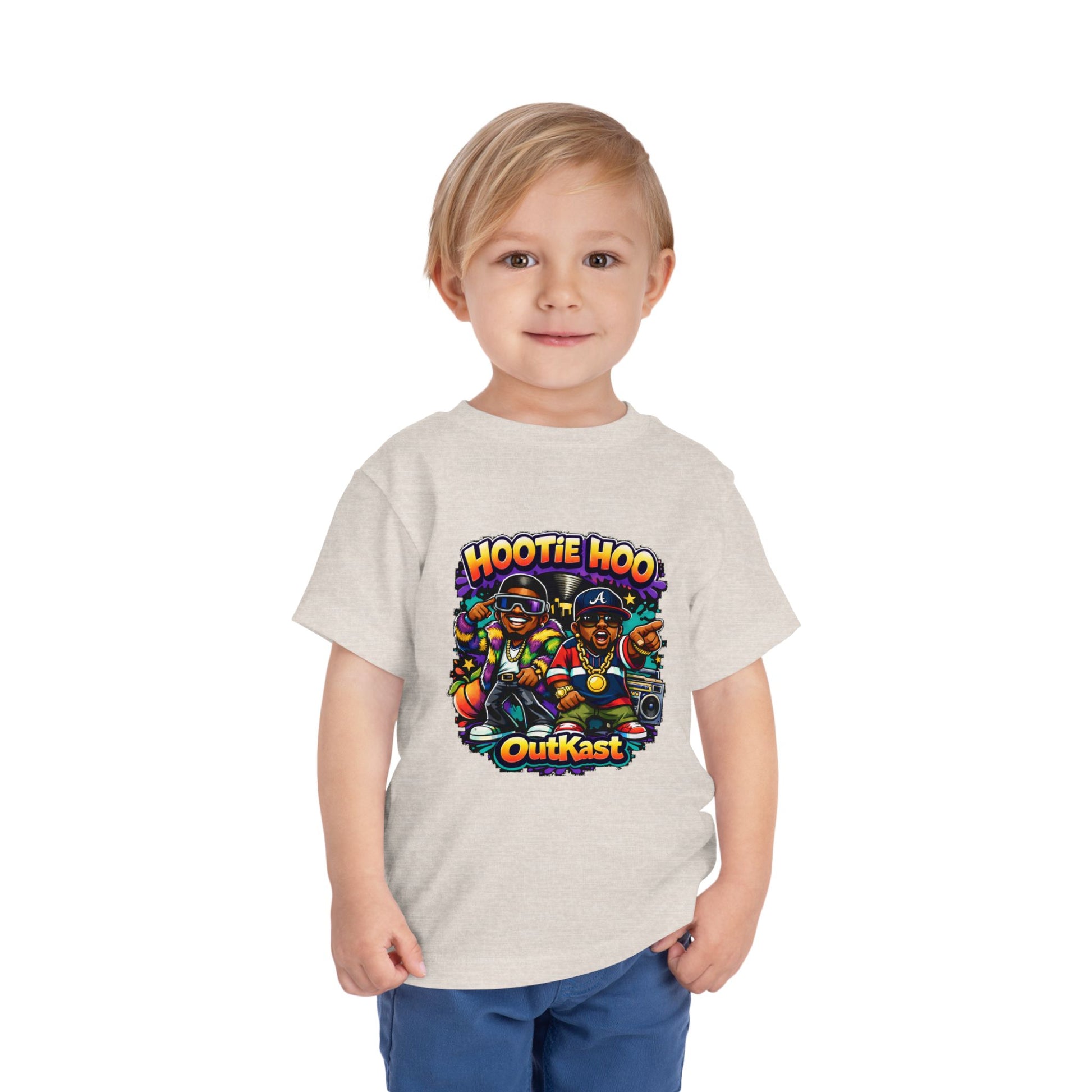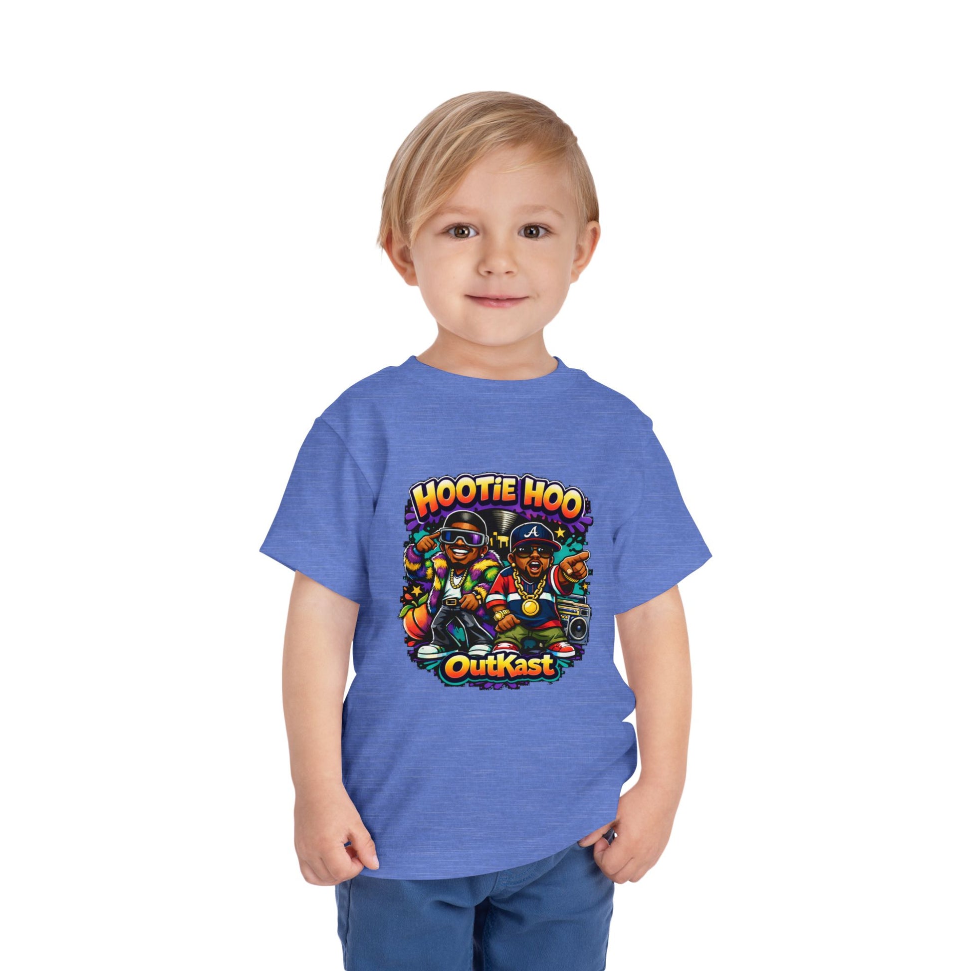 Bright, playful tee made for little fans who love bold music and color. This lightweight toddler shirt carries a vintage-hip-hop inspired graphic — two joyful characters, a boombox, and the shout of “Hootie Hoo” — that pops against the clean white canvas. It sits comfortably on active days: nap-time, backyard dancing, or family music night. The image invites giggles and movement, and the soft knit keeps skin happy through play and washes. Let them wear the vibe of a tiny party — confident, loud, and utterly kid-sized.