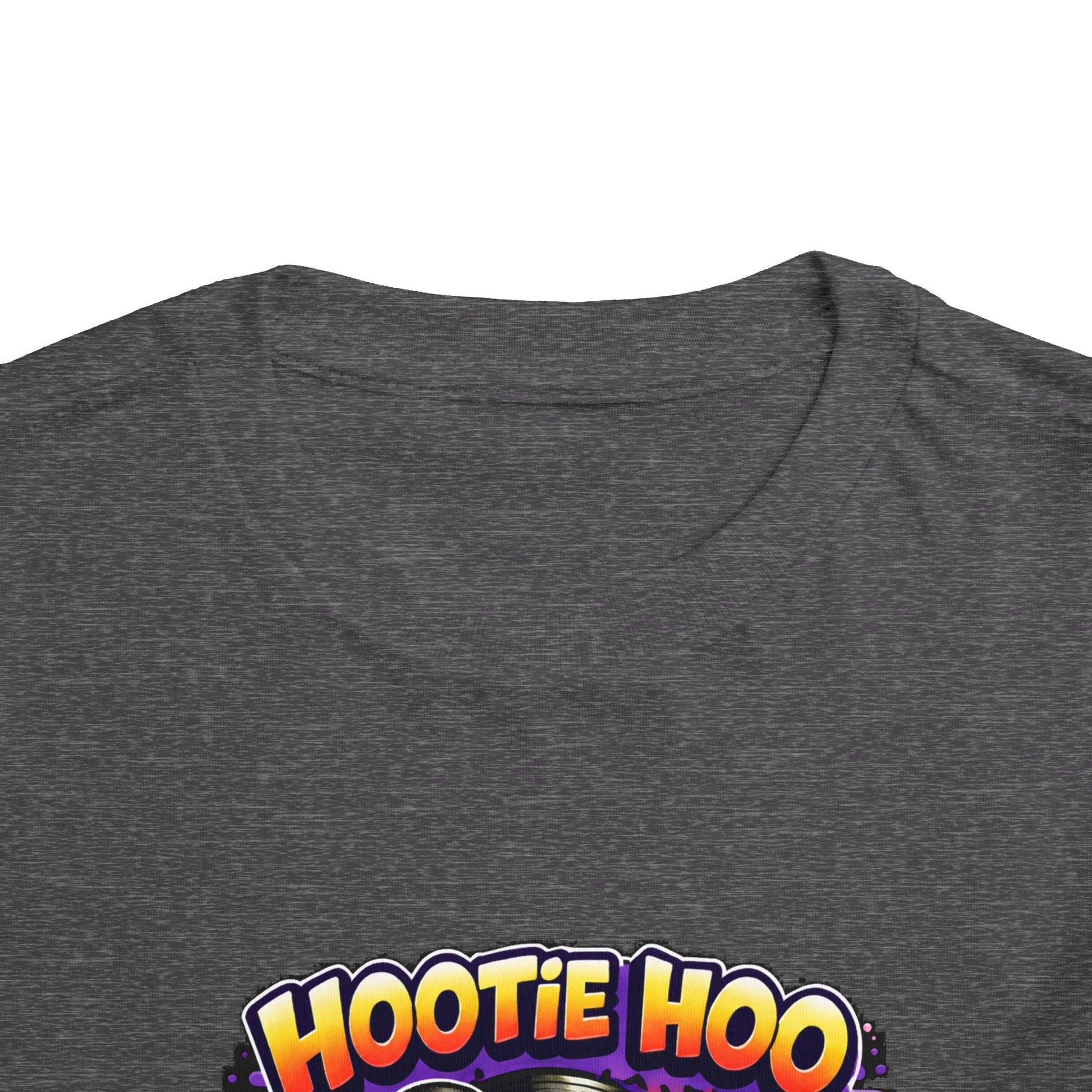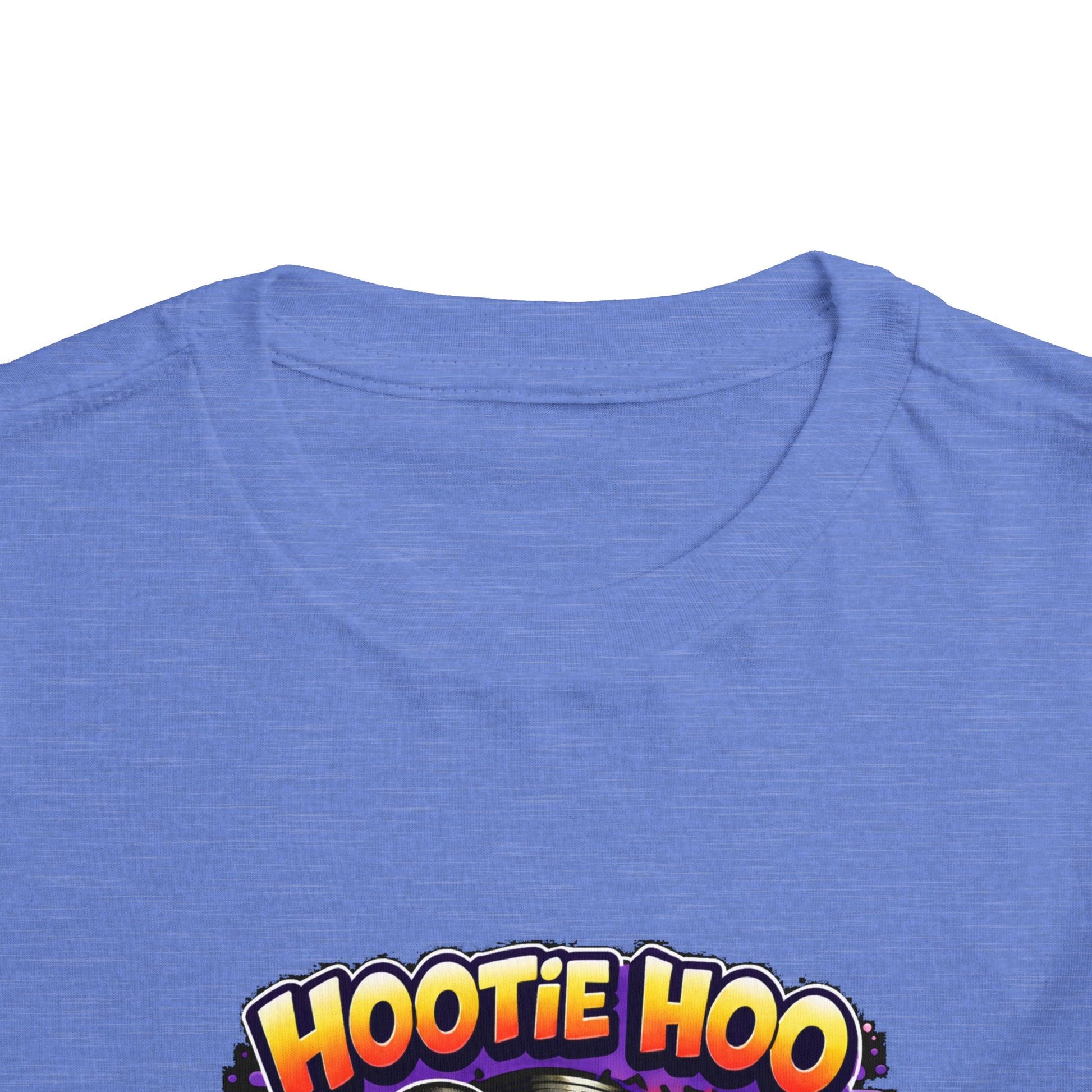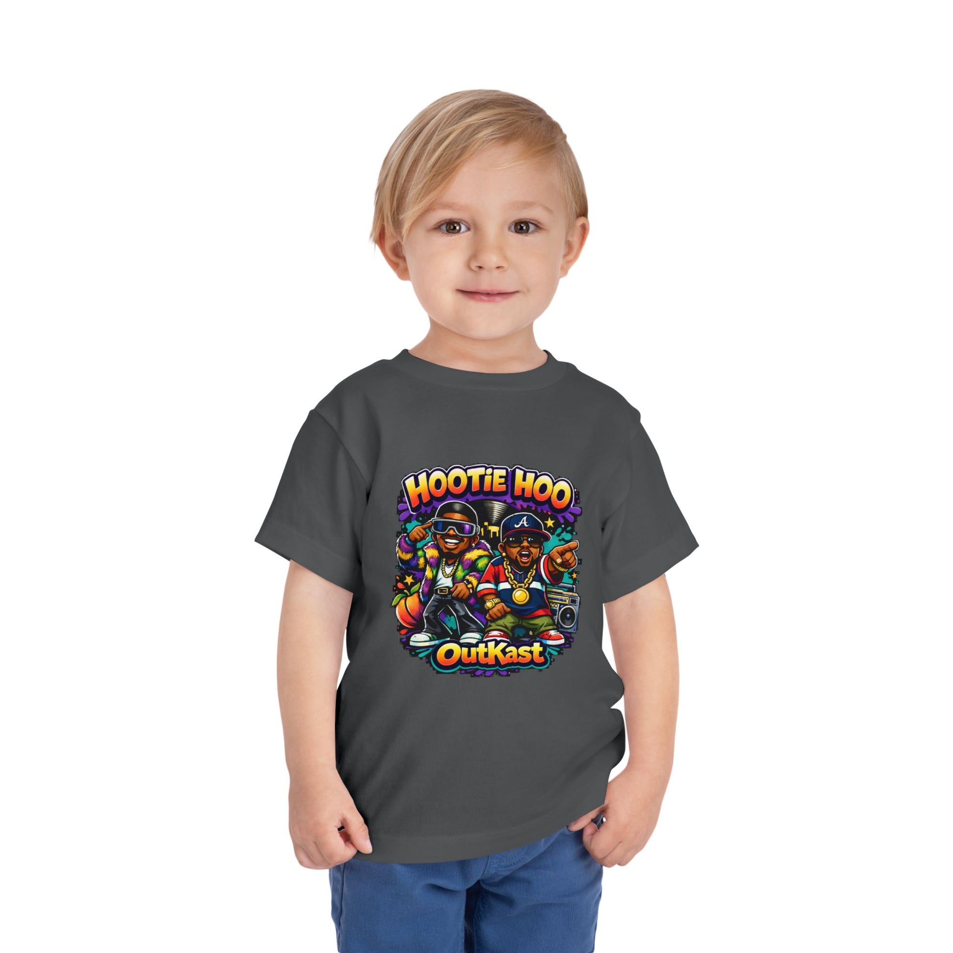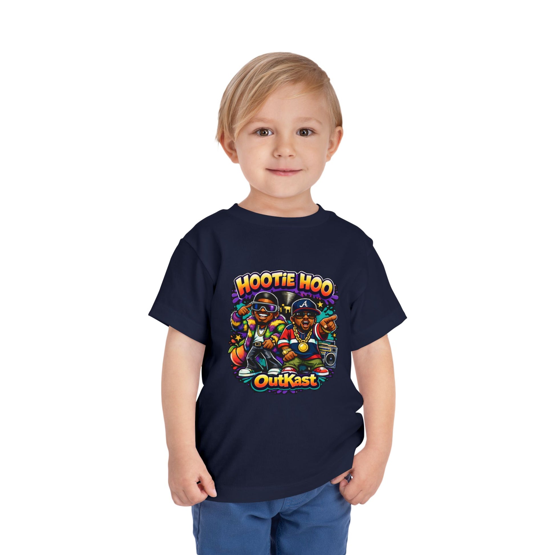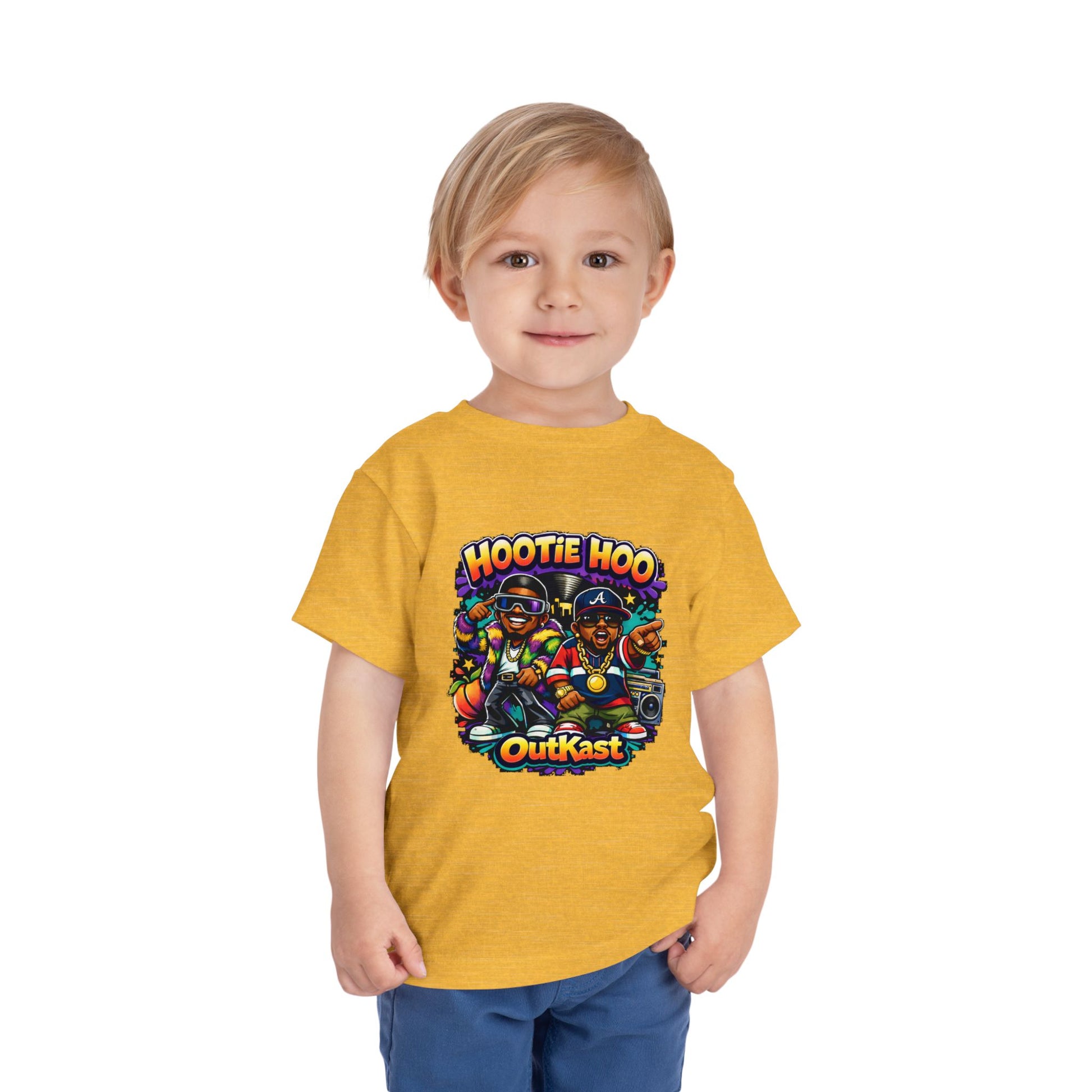Bright, playful tee made for little fans who love bold music and color. This lightweight toddler shirt carries a vintage-hip-hop inspired graphic — two joyful characters, a boombox, and the shout of “Hootie Hoo” — that pops against the clean white canvas. It sits comfortably on active days: nap-time, backyard dancing, or family music night. The image invites giggles and movement, and the soft knit keeps skin happy through play and washes. Let them wear the vibe of a tiny party — confident, loud, and utterly kid-sized.